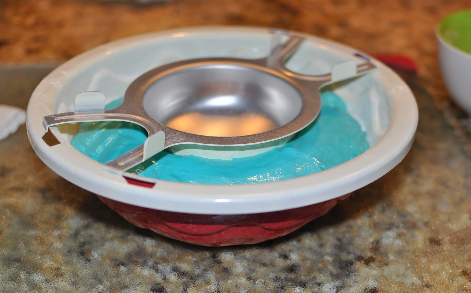 Having learned my “overflow” lesson from the first cake, I removed 1 cup of batter before filling the piñata cake pan again. With 1 cup removed, the batter was just touching the underside of the inverted dome. I figured that this cake would be safe from overflow…